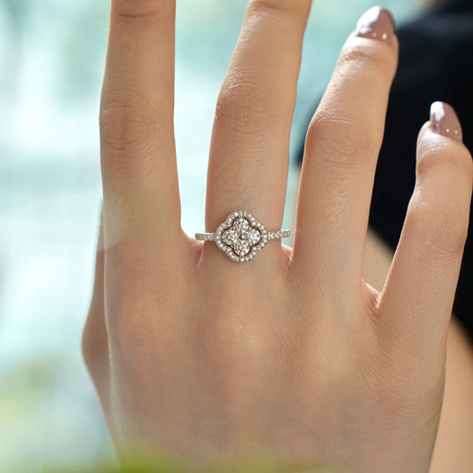 White Gold Plated Lucky Four-Leaf Clover Ring
