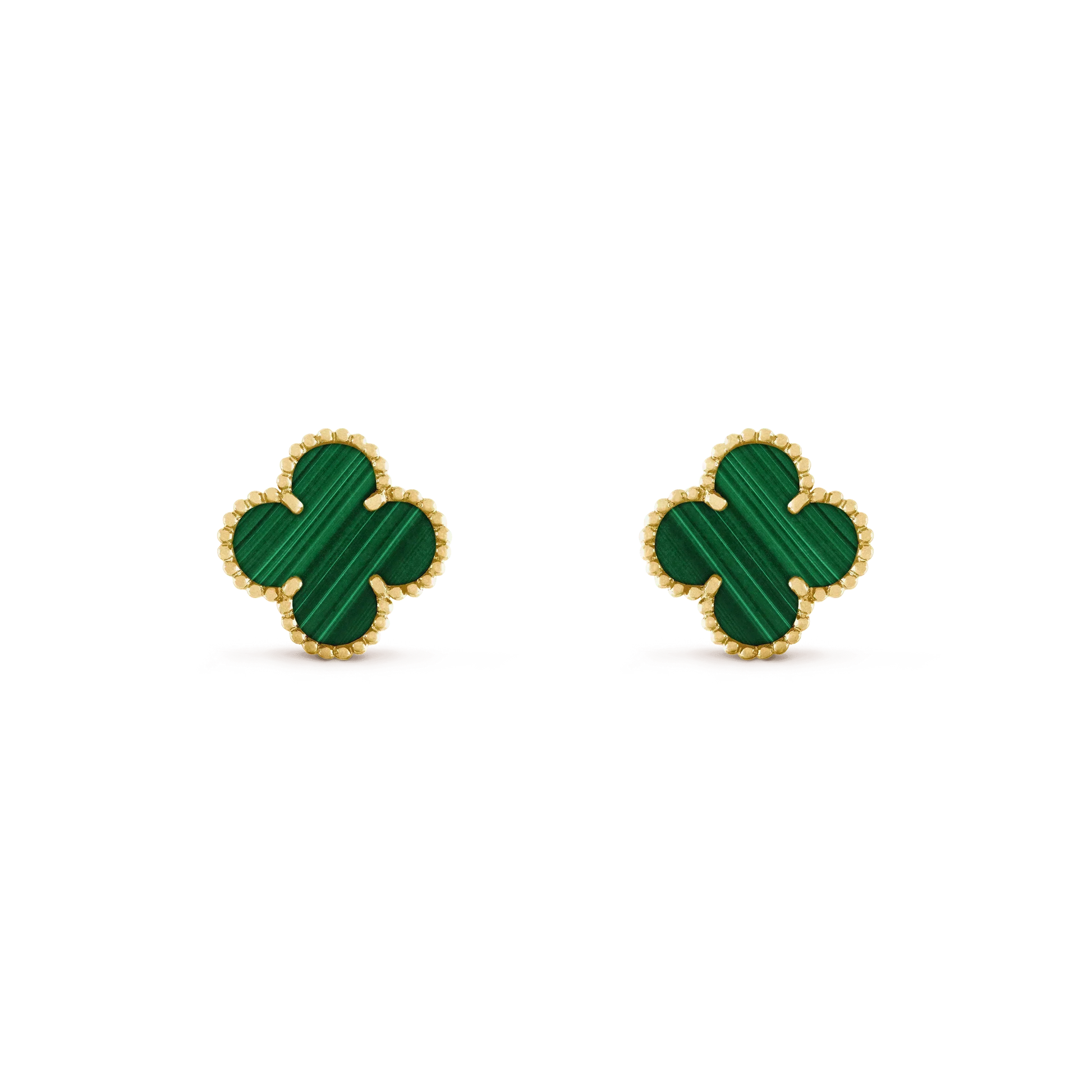 [Charm Aries Jewelry]CLOVER MEDIUM 1 MOTIFS MALACHITE EARRINGS