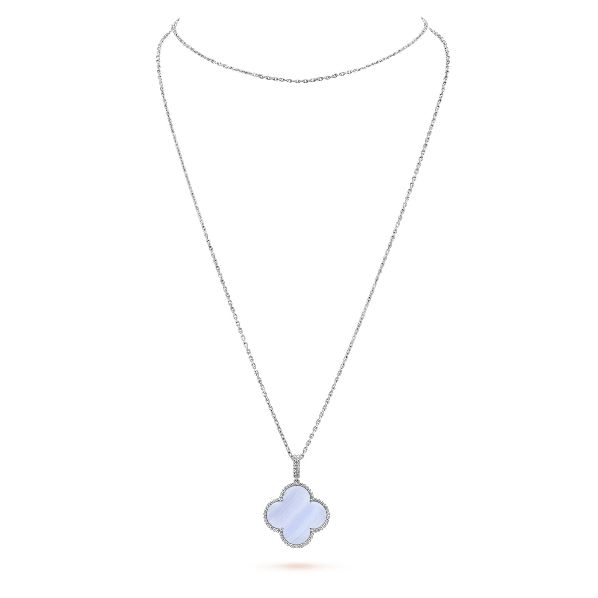 [Charm Aries Jewelry]CLOVER SILVER CHALCEDONY BIG CLOVER NECKLACE