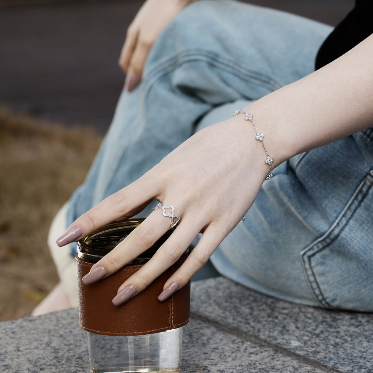 [Charm Aries Jewelry]Four-Leaf Charm Aries Hollow Butterfly Bracelet